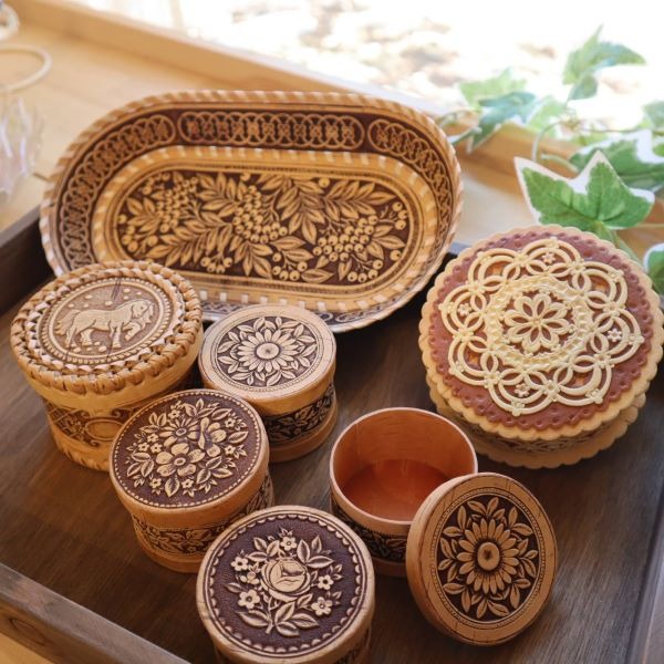 ベレスタという白樺の樹皮で作られている工芸品だそうです。